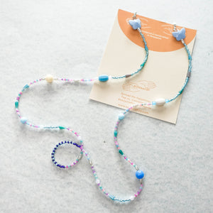 Dreams you wish 4 in 1 mask chain with ocean speckles pompom earrings